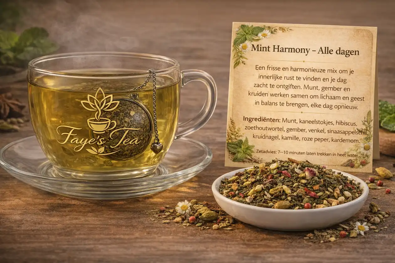 Bestel Faye’s Tea Mint Harmony en geniet thuis van een dagelijks moment van ontspanning, balans en innerlijke rust!